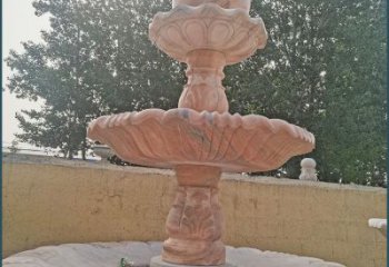 红大理石石雕园林喷泉,展现绚烂晚霞