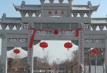 传统中式园林村庄入口石雕牌坊