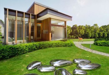 高端室内草坪装饰,不锈钢雕塑镜面石头安放