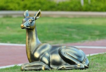 不锈钢仿铜睡鹿雕塑,点缀户外广场草坪