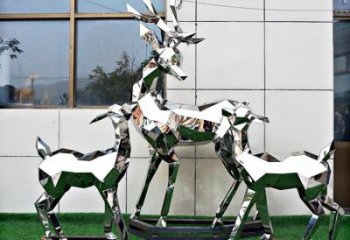 不锈钢抽象动物雕塑——梅花鹿,为户外草坪增添几何美感