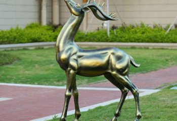 草坪装饰不锈钢仿铜抬头鹿雕塑