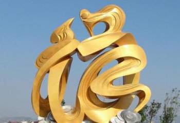 金色玻璃钢福字雕塑,为广场带来祥和之气