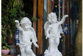 精美灵动的汉白玉提灯小天使石雕