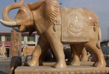 大型黄蜡石雕大象雕塑,为企业、酒店、景观增添华丽风采