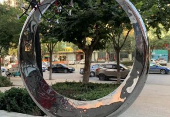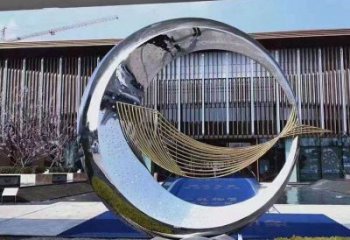 高端不锈钢创意镜面圆环雕塑,点缀酒店会所装饰