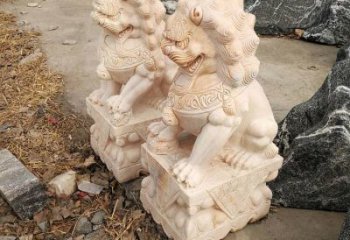 精美大理石雕刻石狮子,为酒店门口添彩晚霞红