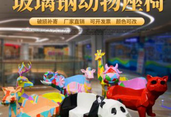多功能玻璃钢仿真彩绘动物座椅雕塑