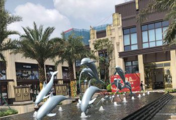 精美不锈钢海豚喷泉潜泳池,让您的户外空间更加美观