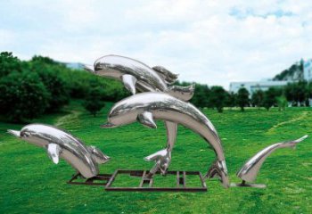 不锈钢海豚形象雕塑,给草坪增添独特姿态
