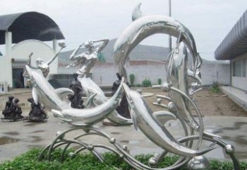 不锈钢海豚雕塑,为户外游泳添彩