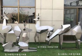 不锈钢鹿雕塑景观拉丝切面喷漆创意户外几何公园装饰