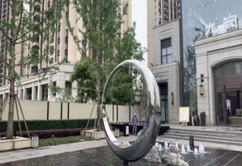 不锈钢镜面圆环景观雕塑园林水景喷泉装饰