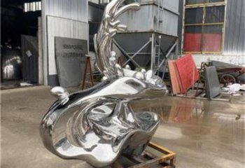 大型不锈钢海豚雕塑喷泉水景摆件