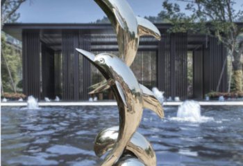 不锈钢户外景观水景海豚雕塑