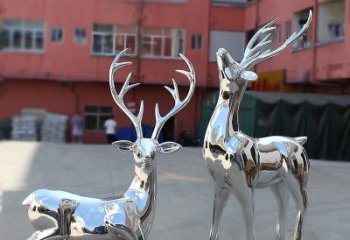 不锈钢镜面鹿雕塑,点缀公园景区