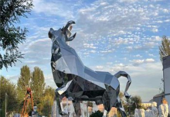 大型不锈钢牛雕塑,抛光切面