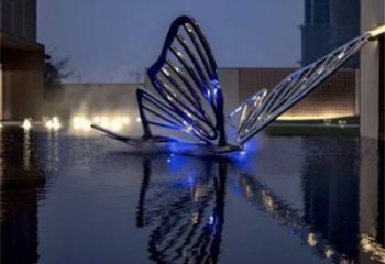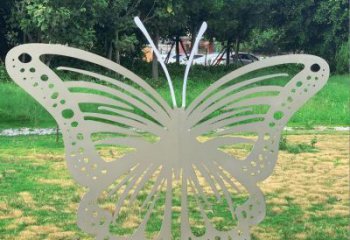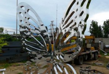 大学校园里的不锈钢抽象蝴蝶雕塑