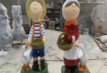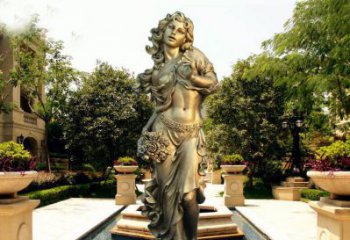 西方公园迷人的铜雕男女人物