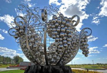 园林不锈钢镜面水果葡萄雕塑,极其高妙:有斑痕的贝壳,锯成带疤痕的树木躯干。具有螺丝旋纹的高端大型不锈钢葡萄雕塑,切成仕女的发髻。