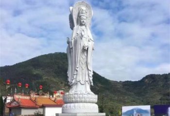 经典传统工艺精致大理石浮雕观音站神像摆件