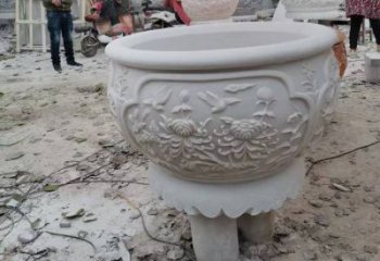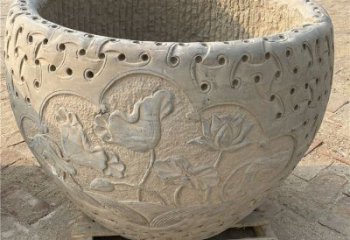 经典雅致的庭院景观精致理石浮雕水缸雕塑