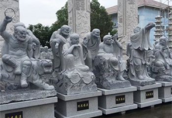 包括释迦牟尼佛、强巴佛、观音菩萨、阿弥陀佛等等。玻璃钢十八罗汉雕塑也包括菩萨等佛教所有造像。玻璃钢神佛十八罗汉雕塑在佛教造像中,占有很大的比例。例如观音、文殊、普贤、地藏菩萨,彩绘神佛十八罗汉雕塑显得亲切、庄严,表现了慈祥、优美、宁静的审美情调。随着佛教渐渐进入中国,逐渐地被玻璃钢彩绘十八罗汉雕塑所融合。