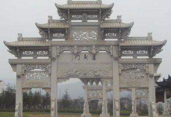 中式创意石雕牌坊门楼大理石雕塑是一种以大理石为原料制作的高质量石雕牌坊门楼,它以其独特的造型,精致的雕刻,细腻的工艺,以及精美的石雕牌坊门楼,为景区景点增添了美丽的色彩。