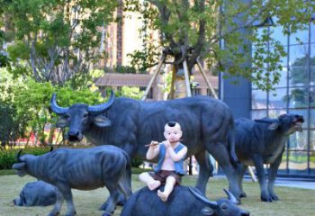 玻璃钢仿真动物牧童骑水牛雕塑摆件