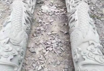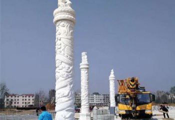 汉白玉浮雕古体龙柱点缀园林广场