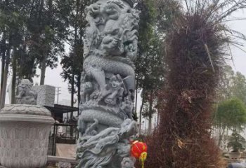 在经历了百年的发展,点缀龙柱雕塑更需要有新鲜的内容。第二,要把现代寺院石经幢的图案以及内容做一定的浮雕龙柱雕塑,比如在编排以及花样上都可以做一些新的设计。汉白玉古体龙柱雕塑有横排版或者竖排版,现在我们可以采取排字的时候穿插一些图案,这样既生动形象又可以使得整个建筑更加灵动。