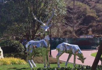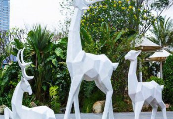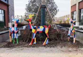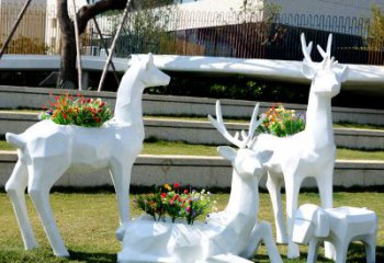 玻璃钢雕刻仿梅花鹿雕塑,为池塘草坪添彩