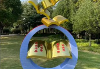 本作品为校园景观雕塑,采用不锈钢雕塑工艺打造,以 “飞翔” 为核心意象,构建兼具视觉张力与精神内涵的公共艺术装置。雕塑主体为镜面不锈钢锻造的抽象环形,线条刚劲流畅,如时光之环、生命之轮,寓意校园的包容与传承;环身错落分布的白鸽群像,姿态舒展、振翅欲飞,象征学子们挣脱束缚、追逐理想的青春姿态,也传递和平、自由与希望的价值追求。镜面不锈钢材质在不同光线与视角下折射建筑与天光,让雕塑与校园环境自然融合,实现艺术与空间的对话。基座以黑色石材为底,红色 “飞翔” 二字醒目有力,点明主题,强化视觉记忆。整体造型简洁大气,既符合现代校园的审美气质,又承载着育人功能:以灵动的艺术语言激励学子们胸怀理想、勇敢翱翔,是校园文化精神的物化表达,也是一处可供师生驻足、感悟与交流的公共精神地标。