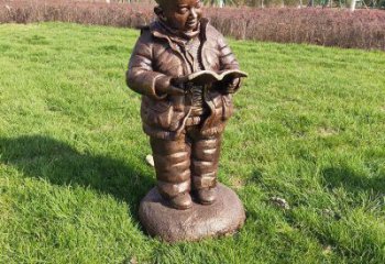 不锈钢小男孩读书雕塑