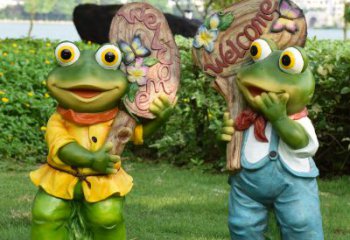 创意玻璃钢青蛙雕塑是一种以青蛙为主题的卡通玻璃钢雕塑,由玻璃钢制作而成,以青蛙的形象为主题,以其独特的卡通风格表现出来,为景区带来新颖的景观。