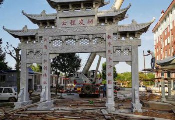 村口石雕牌坊是一种具有古典传统特色的雕塑,它以古老的青石材料为原材料,以精细的仿古雕刻技术为基础,将古老的传统文化特色融入到雕刻中,创造出完美的艺术品。经过雕刻的村口石雕牌坊,不仅能够给人以古老的视觉效果,而且还能够传达出一种令人沉思的文化气息。