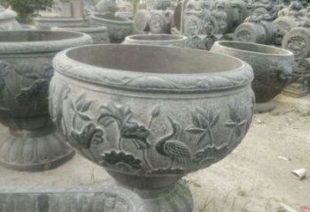 青石仿古石雕园林庭院浮雕莲花缸雕塑