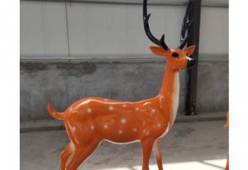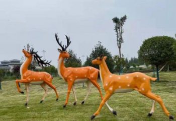 玻璃钢梅花鹿彩绘童趣雕塑,为户外园林增添童趣