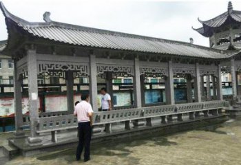 石雕石凳雕塑靠,是大门两边墙基旁的石构件。高一般在160厘米左右,宽30厘米左右,厚40厘米左右。柱头顶端大都圆雕狮子,有的靠后还留一护板。笔者认为,大理石石雕石凳雕塑是唐代以后由拴马桩发展演变而来的,是陕南民间一种创新,它同样具有拴马桩的功能,和拴马桩同时存在。